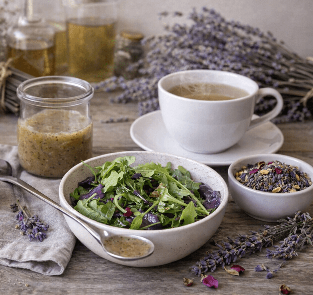 Let the vinaigrette rest for 15–30 minutes at room temperature (or a few hours in the refrigerator) to allow the lavender flavors to fully meld. Shake well before using.
